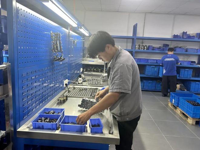 作为一家专注于全球车型变速箱维修和新能源汽车电池维保的企业,公司的作业流程覆盖多个工种和模块,对维修人员的实操能力要求很高。在上汽通用汽车9AT阀体装配区域,一位操作员吸引了记者的注意。他叫邹雷,20岁出头,来自宝山职校的汽车运用与维修专业,通过校企的产教融合项目进入企业实习,如今已工作两年了。“一开始觉得车间节奏太快了,跟学校完全不一样。” 邹雷边调整夹具边回忆说,“在课堂上我们主要学的是变速箱系统的结构原理,真正面对实物的时候,发现很多地方是靠经验和手感的。”