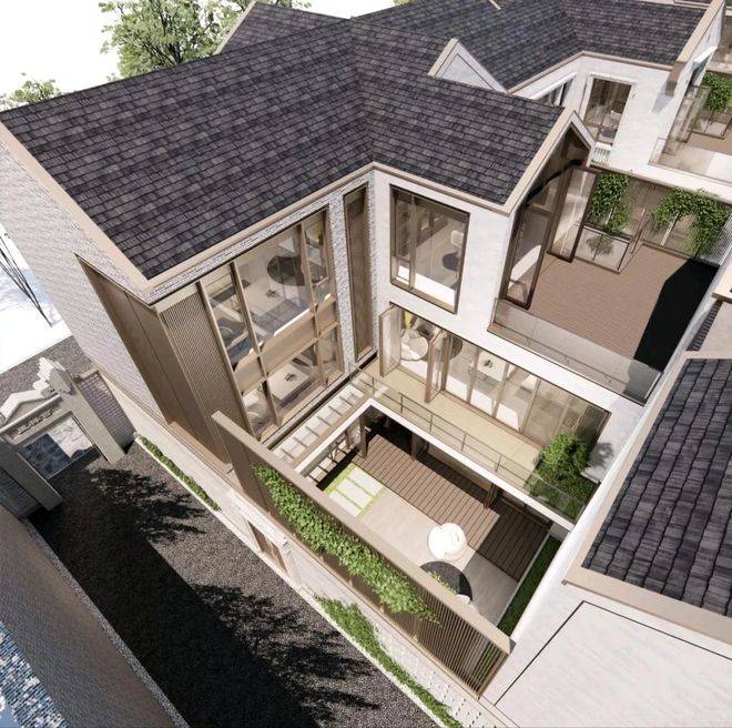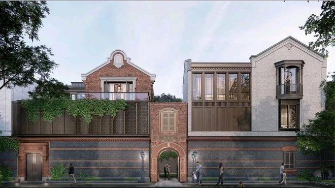 效果图,仅供参考建筑风格上,项目融合江南民居的青砖墙面、老虎窗与西式铸铁栏杆,符合《黄浦区风貌保护导则》中“历史元素保留率不低于70%”的要求。这种风格在市场中具有非常高的辨识度。