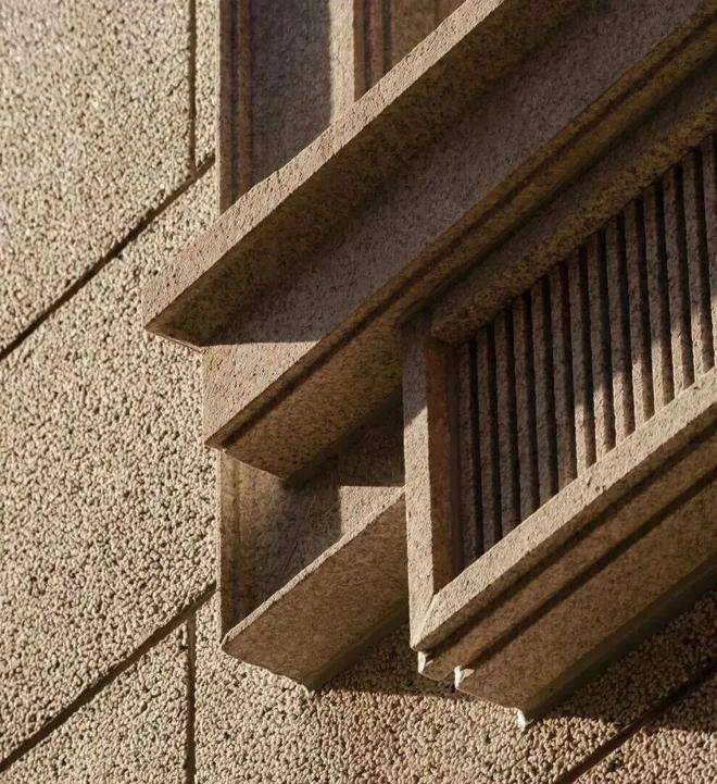 水刷石墙面由匠人甄选石子,匹配颗粒大小,经七道工序及“洗三磨三”处理,以确保颗粒均匀。这种工艺不仅保持了老墙的味道,还增加了防酸防潮功能,适应未来气候变化。