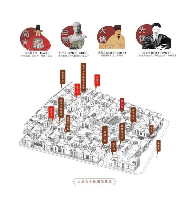 明清的商贾望族曾在这里聚居,徐光启家族、董其昌家族、清制墨四大家胡开文家族等等,不同家族在谦和礼让和发展竞争中形成独特的边界,以界址明示,也留下了各具特色的历史建筑。
